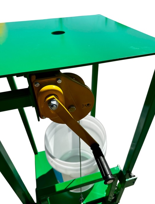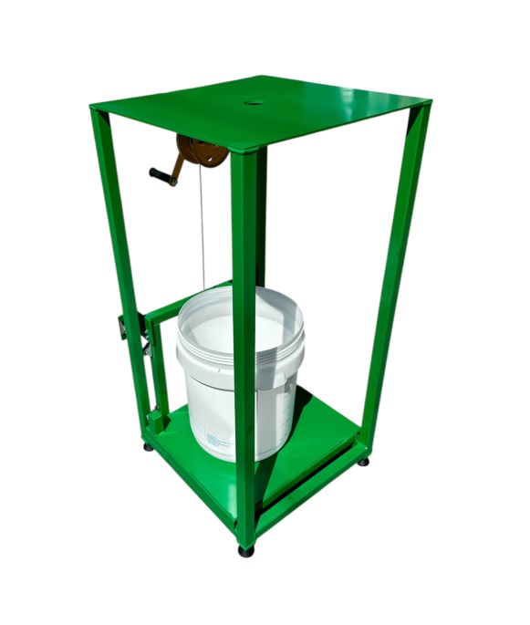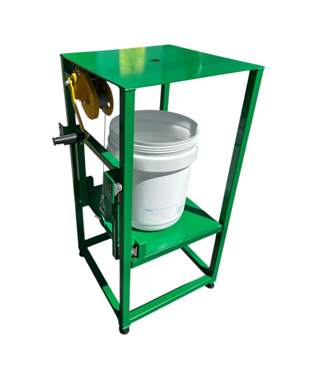 Incorporating a load brake winch, the lower part of the frame has a moving platform for raising and lowering of the water container, allowing the test specimens to be weighted in both air and water.